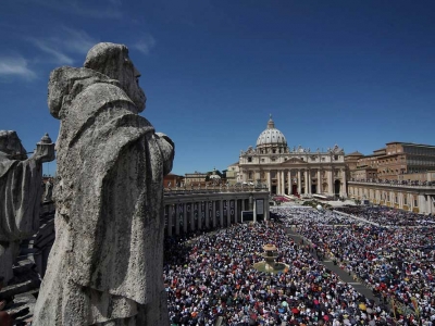 В утренней мессе на площади Святого Петра, представленной десятками стран мира, принимает участие от 50 до 100 тысяч человек.